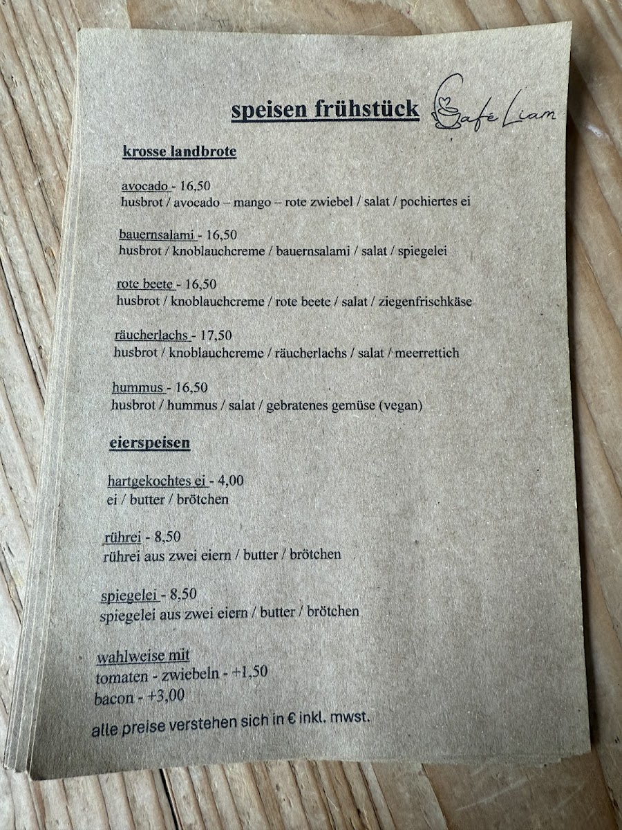 Café Liam Menu